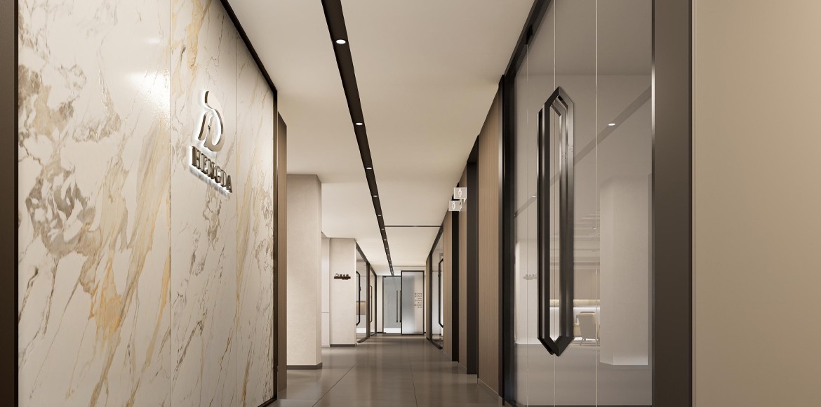 恒达健身文化用品集团办公区的设I计选用木饰面搭配金属;空间的色调以暖调为主,把亦公区打造为一个有“家”氛围的办公环境.