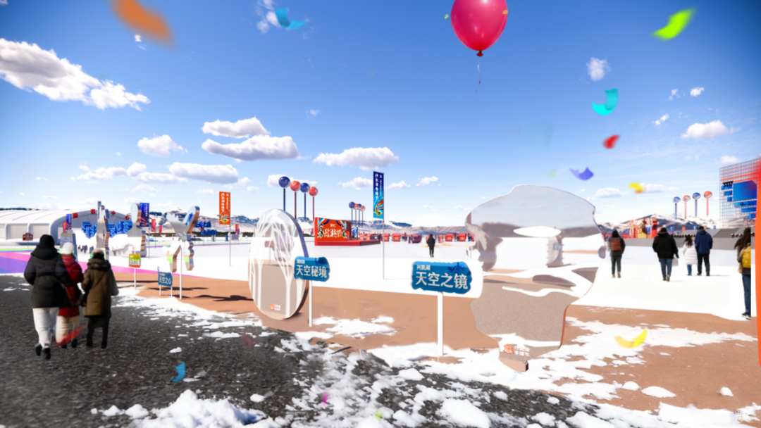 并且设计了冰上气模游客中心,兼顾快速搭建、成本控制与舒适休息功能: