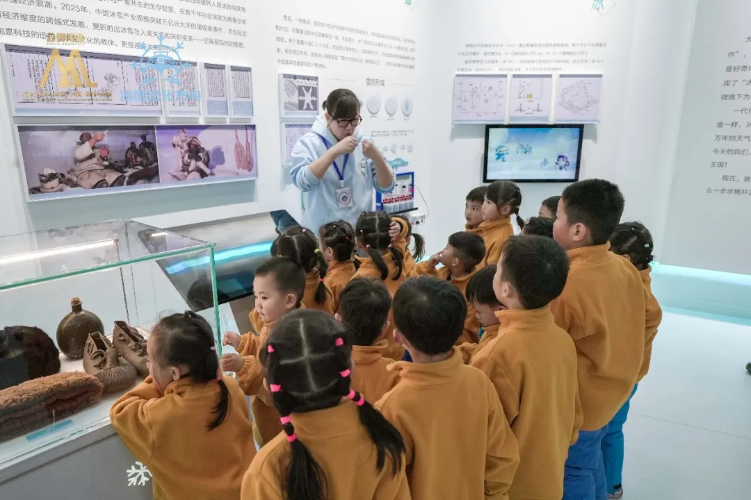 冰雪文化展示区以“史、技、艺、创”为脉络,从古老的冰雪习俗到现代的冰雪艺术,百年冰雪印记静静陈列,全景呈现哈尔滨冰雪文化的百年图腾。